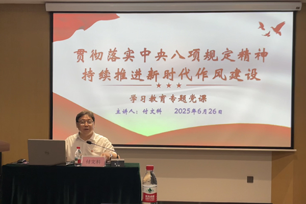付文科同志到樸誠公司講授學習教育專題黨課